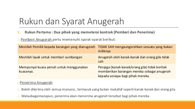 Ketiga rukun akan dijelaskan sebagai berikut. RUKUN DAN SYARAT HIBAH. Hibah merupakan dalil kepada keharusan hibah al-Qurtubi 2002.