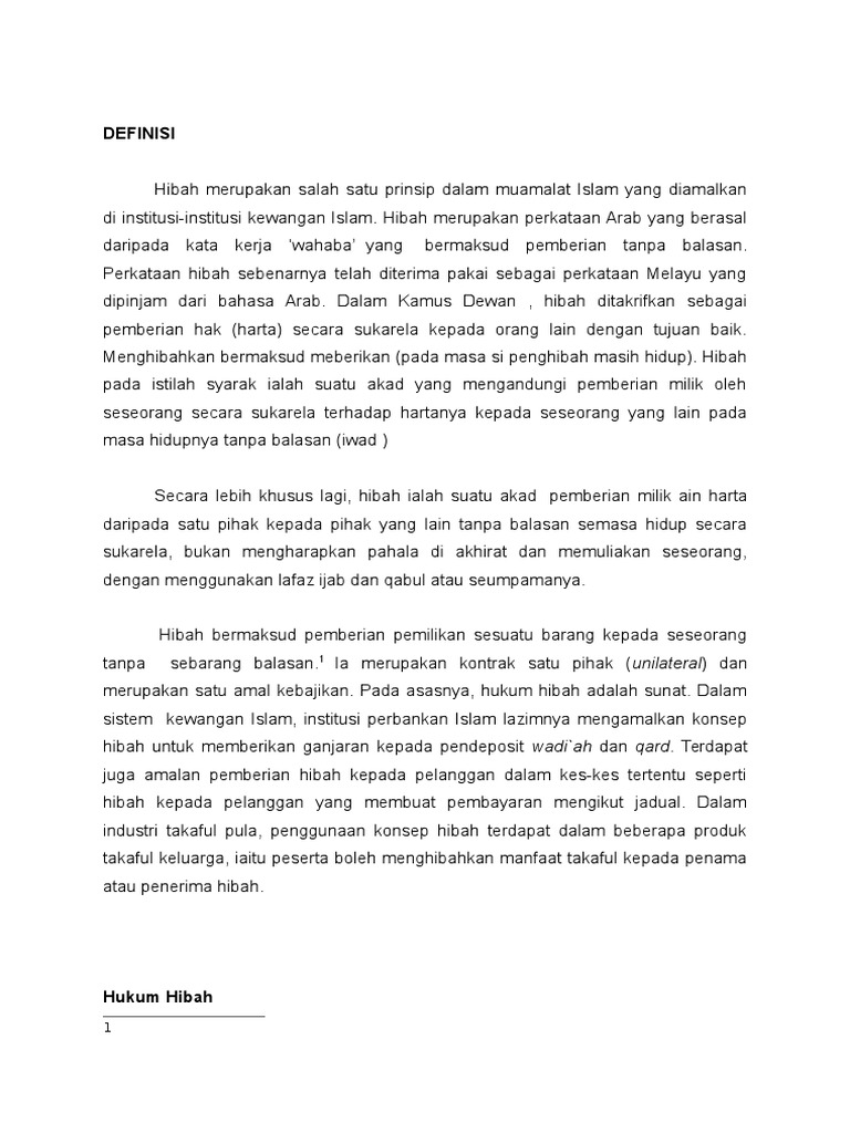 Prinsip hibah secara umumnya bukanlah satu prinsip utama core dalam. Hibah gift inter vivos is one of the principles of Islamic transaction that are applied at Islamic Financial Institutions in Malaysia. Pemakaian prinsip hibah dalam sistem kewangan islam di Malaysia.