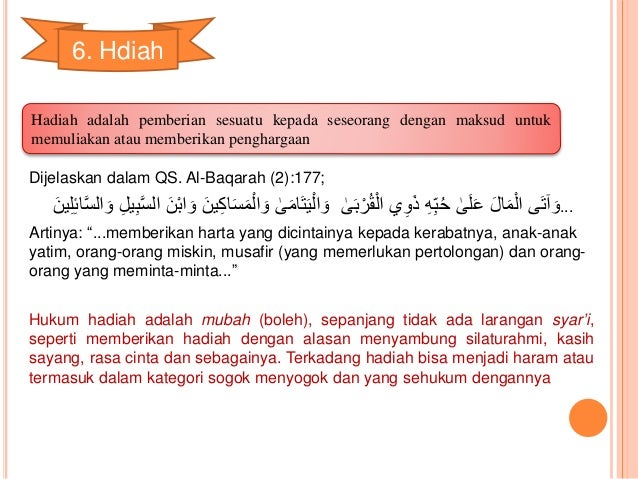 Demikian pula diantara dalil-dalil yang menunjukkan wajibnya adalah apa yang diriwayatkan oleh Imam Ahmad dari hadist Abu Hurairrah ra beliau berkata bahwa rasulullah SAW pernah. Kamu tidak sekali-kali akan dapat mencapai hakikat kebajikan dan kebaktian yang sempurna sebelum kamu dermakan sebahagian dari. Hibah hadiah dan wasiat adalah istilah-istilah syariat yang sudah menjadi perbendaharaan bahasa Indonesia sehingga istilah-istilah ini bukan lagi suatu yang asing.