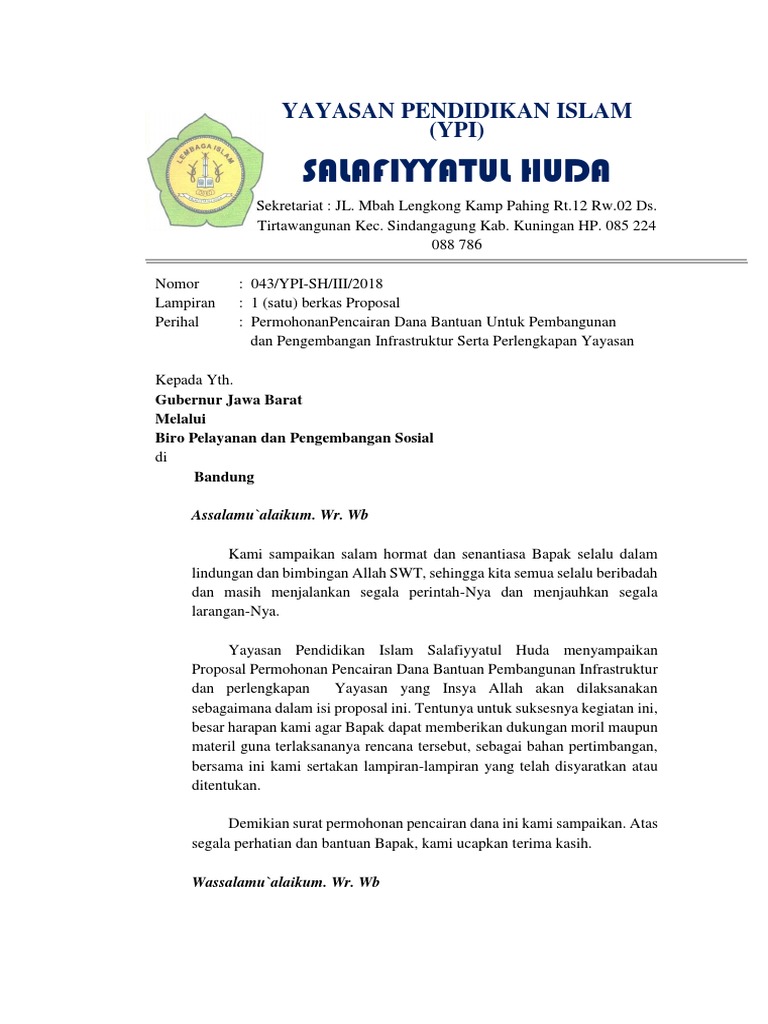 Terima kasih telah mengunjungi blog Kumpulan Contoh Surat 2019. Semua biaya dan pengeluaran harus dicatat dengan baik dan benar dan bisa dipertanggung jawabkan oleh pihak yang bersangkutan. Sehubungan dengan peng ajuan permohonan bantuan Dana Pembangunan Pondok Pesantren Miftahul Huda Al-fahmi KampungManngungsari Rt08 Rw03 DesaTanjungsari KecamatanGunungtanjung Kabupaten Tasikmalaya Provinsi Jawa Barat yang telah kami sampaikan kepada Bapak pada bulan F ebruari 2014 melalui surat nomor.