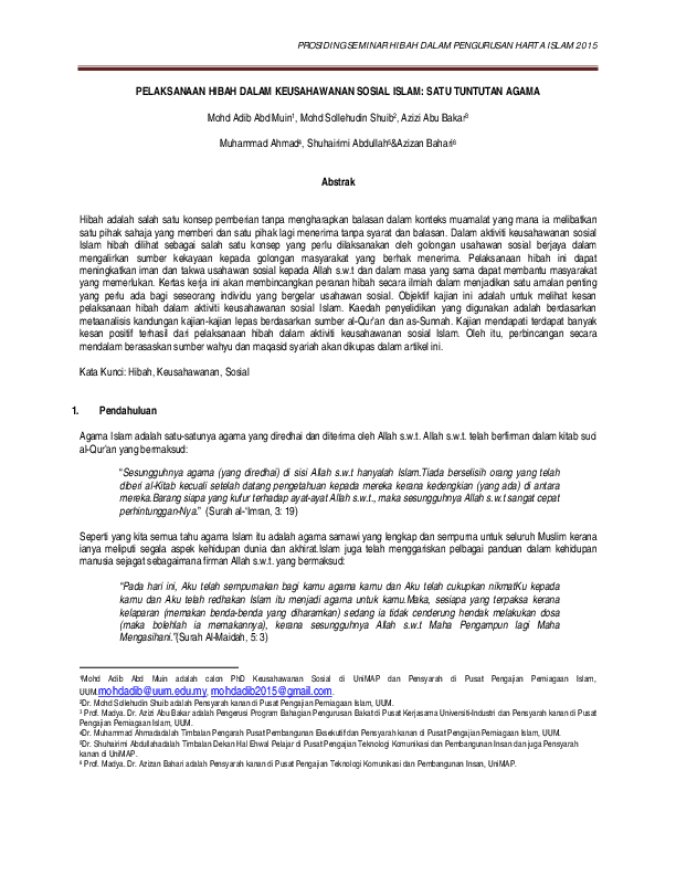 Pdf Pelaksanaan Hibah Dalam Keusahawanan Sosial Islam Satu Tuntutan Agama Mohd Adib Abd Muin Academia Edu