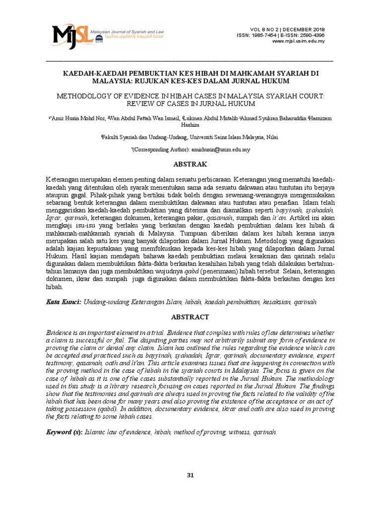 Nasrul Hisyam Nor Muhamad. Namun bukan semua dokumen yang dikemukakan kepada Hakim Bicara diterima sebagai bukti wujudnya hibah. Hibah dalam Undang-undang Islam.